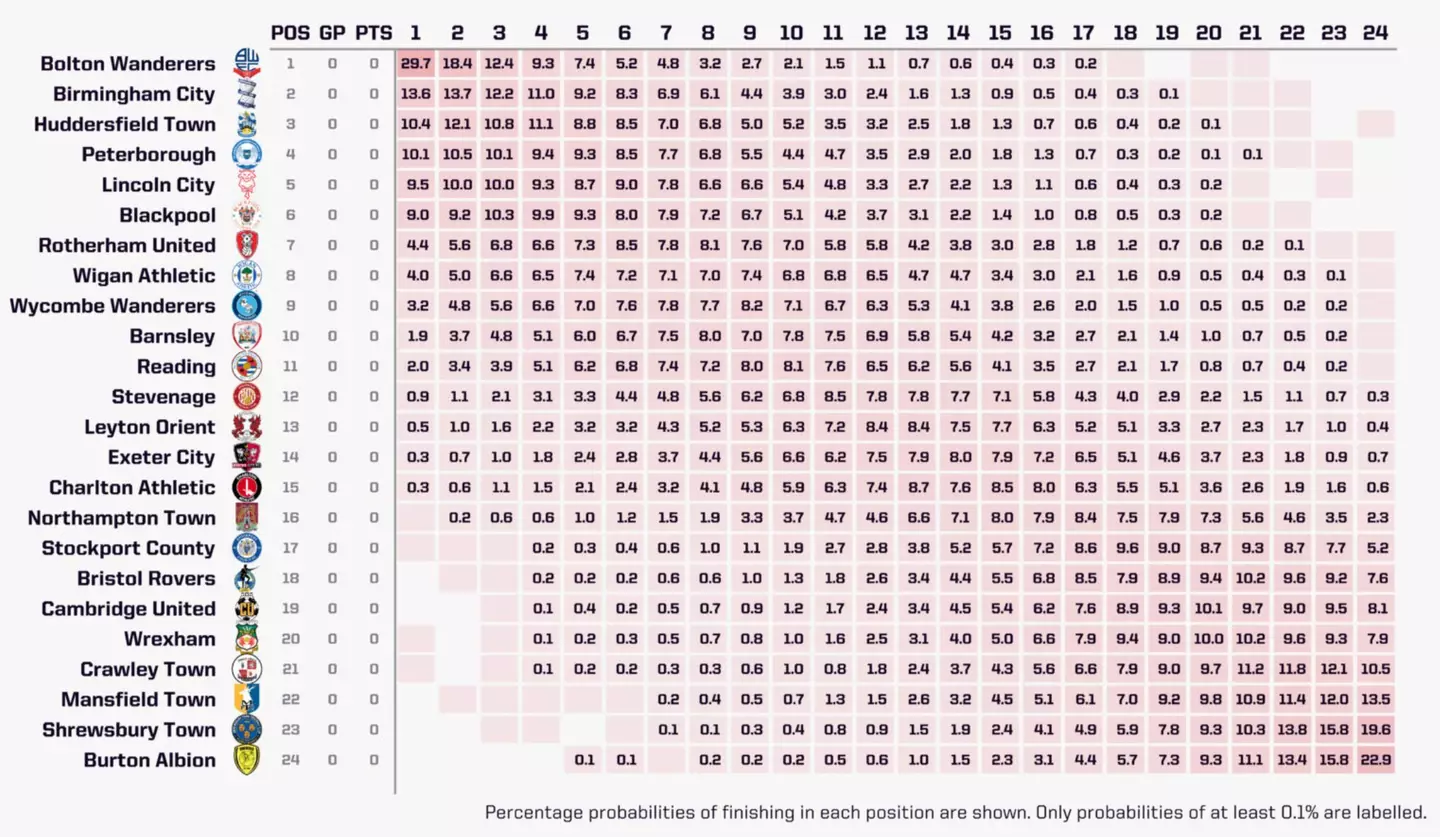 Their most likely finishing position by probability, though, is 21st (10.2 per cent) – meaning the Red Dragons will be out to prove those predictions wrong during the upcoming season.